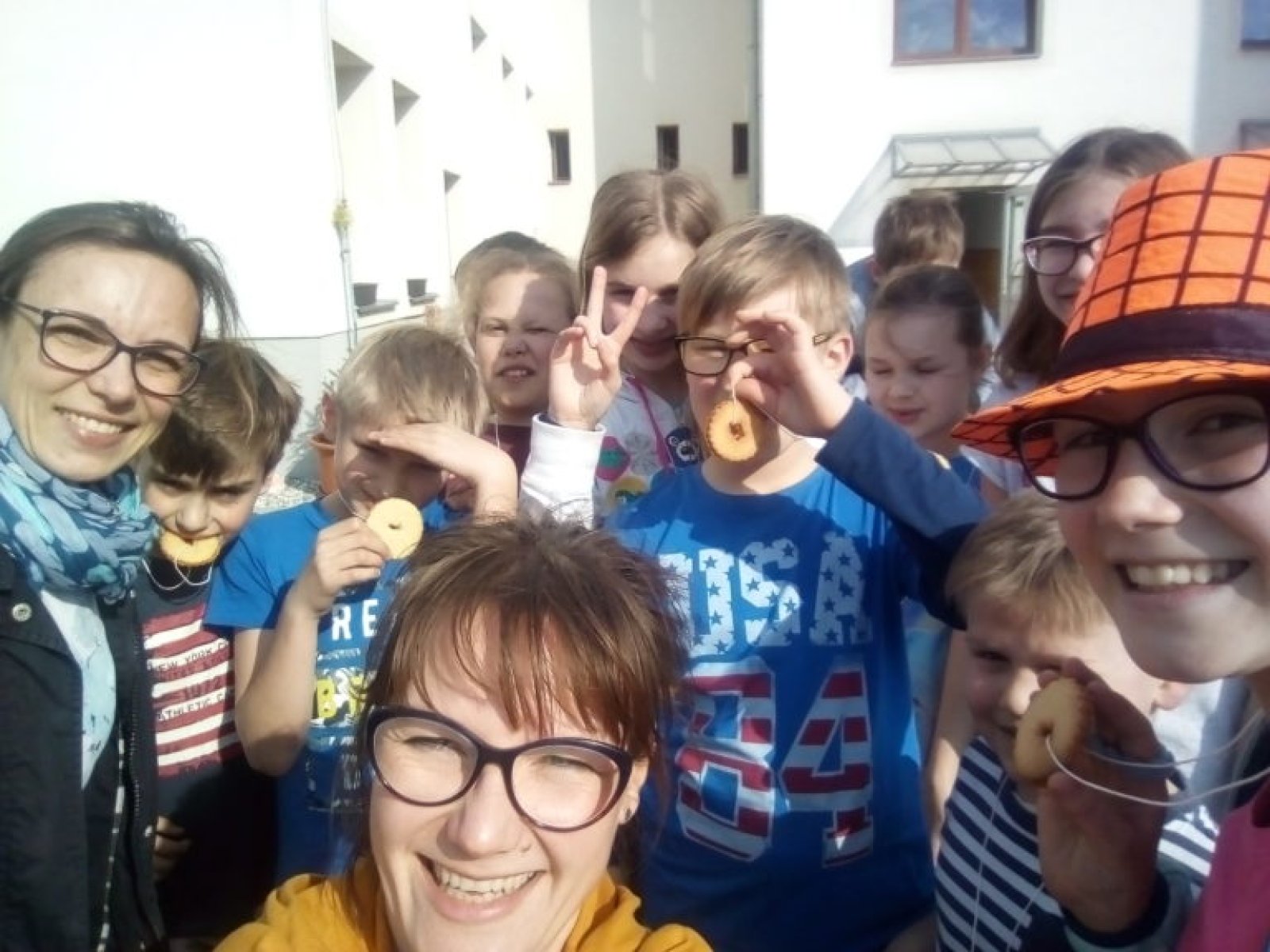 Hanička napekla medaile a děti si za odměnu ve čtvrtek smlsli každý dva kousky medaile jako svačinku. Byly výborné.