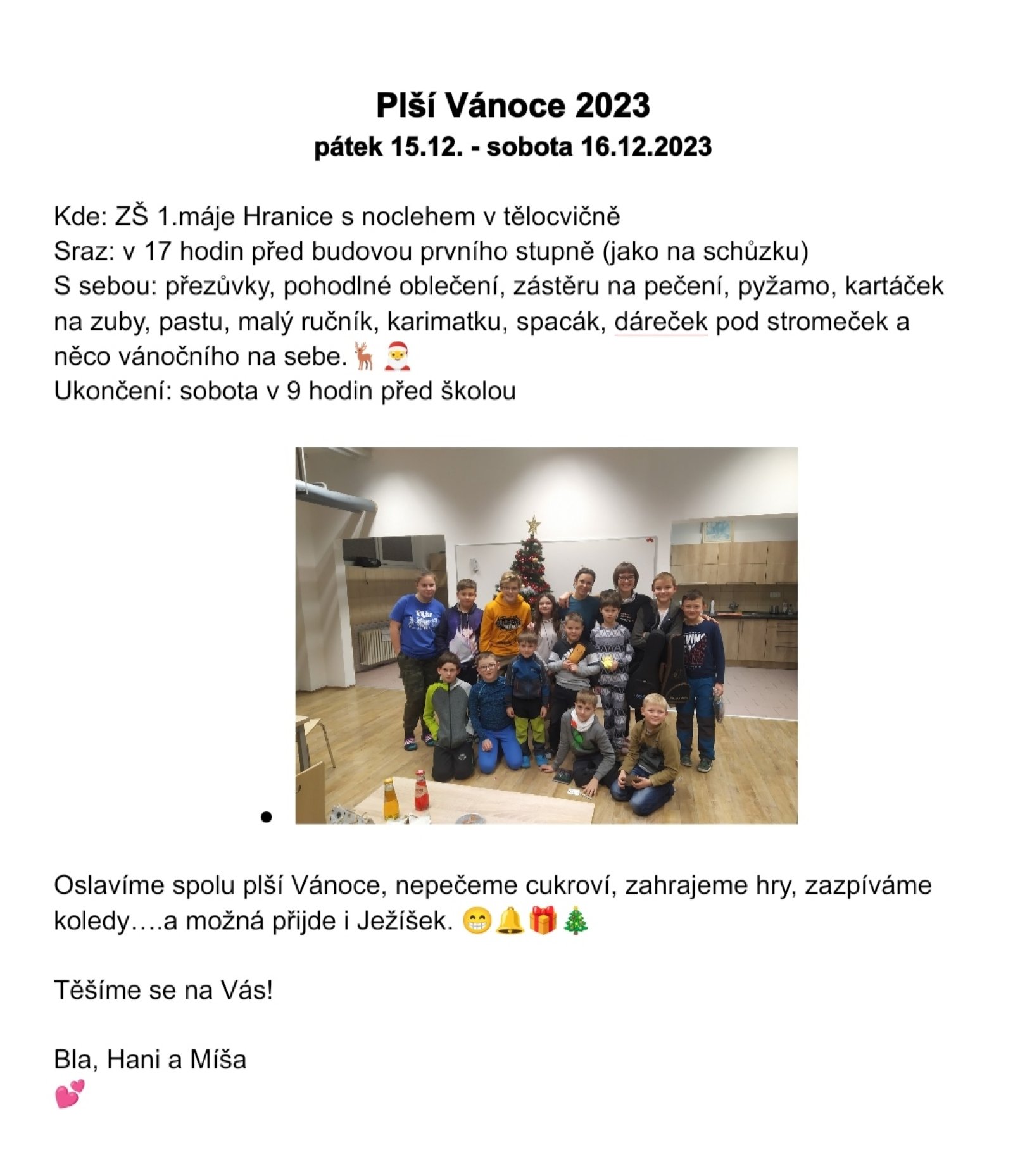 Už se to zase blíží......na Vánoce se těšíme a proto posíláme pozvánku všem našim Plchům a Plšatům na 15.-16.12.2023